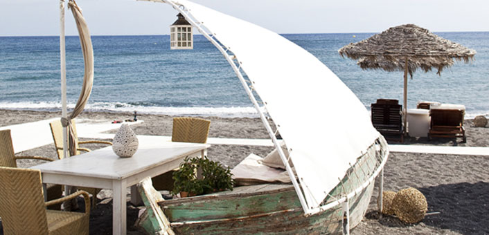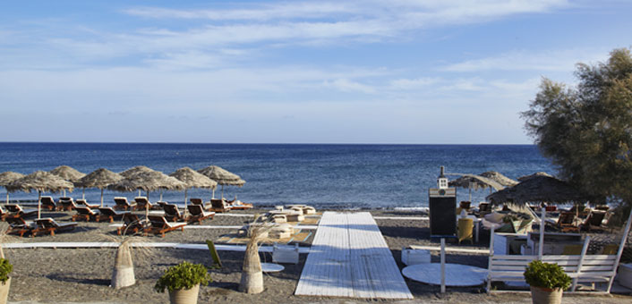 Beach tips: One of the most beautiful and stylish beach bars in Santorini, where the owner- chef Tassos Bacharidis focuses on the cuisine and the impeccable beach service.
