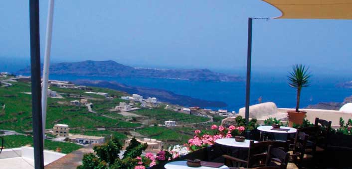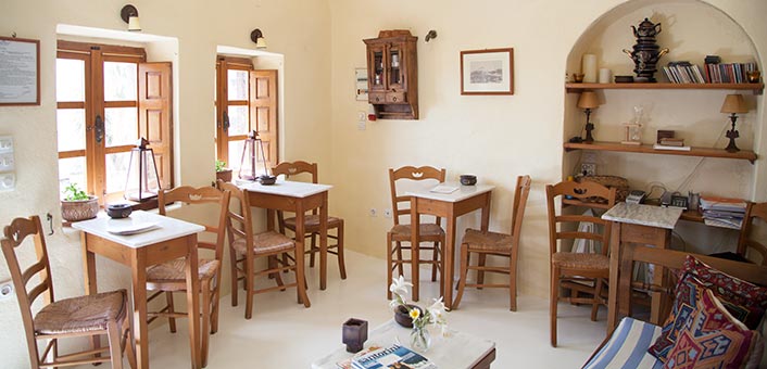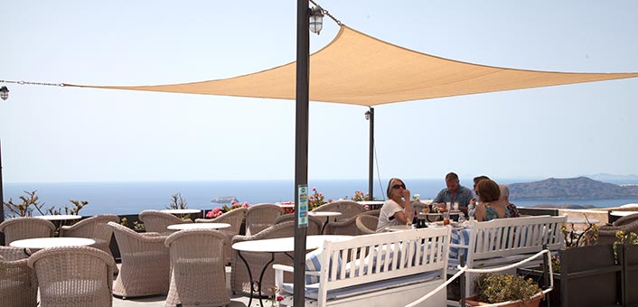 Ideal for: A stop from your walks in Pyrgos village, and a night out to gaze at the lights of the island with a well-made cocktail.