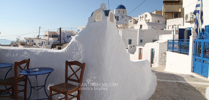 Αξιοθέατα: Στον Πύργο κάντε τη βόλτα σας και θαυμάστε τα αρχοντικά, τις εκκλησίες και τη δομή μιας μεσαιωνικής καστροπολιτείας. Επισκεφθείτε τοΛαογραφικό Χωριό του Γιάννη ΧρυσούΜουσείο η Σαντορίνη του Χθες και μη χάσετε το μοναστήρι του Προφήτη Ηλία στην κορυφή του βουνού. Μπορείτε να πάτε με το αυτοκίνητο ή από το μονοπάτι, η θέα και η αίσθηση ότι πετάτε πάνω από το νησί θα σας αποζημιώσει.