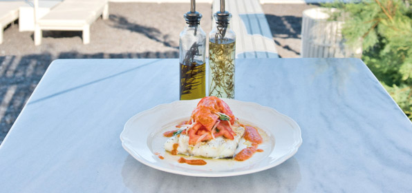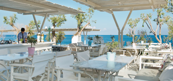 Κουζίνα: Ο σεφ Χ. Παπαγεωργίου αντλώντας την έμπνευσή του από τη Σαντορίνη δημιουργεί λαχταριστά πιάτα για όλες τις ώρες. Πολύ καλά και τα κοκτέιλ.